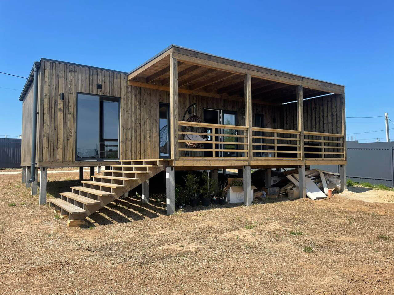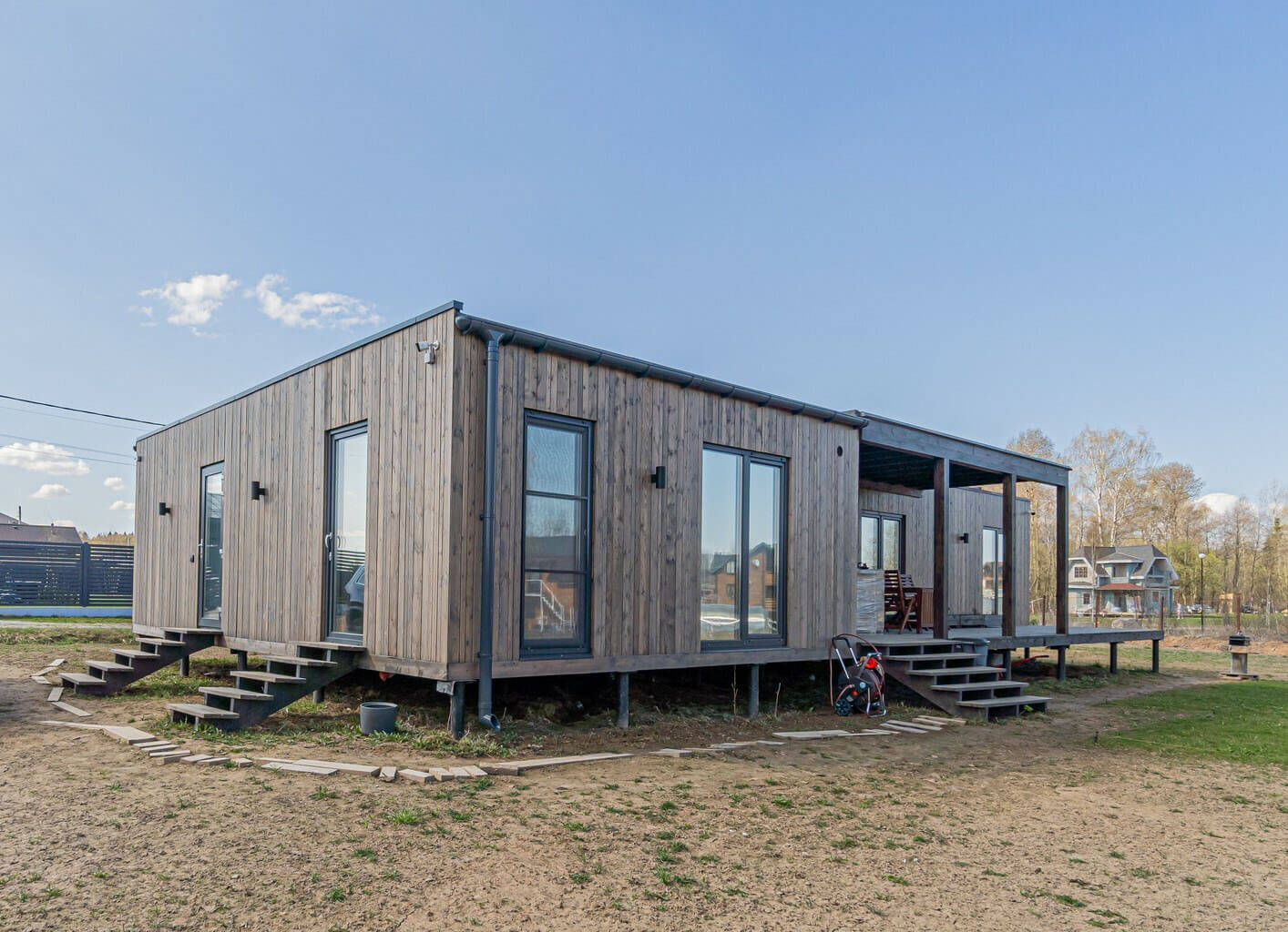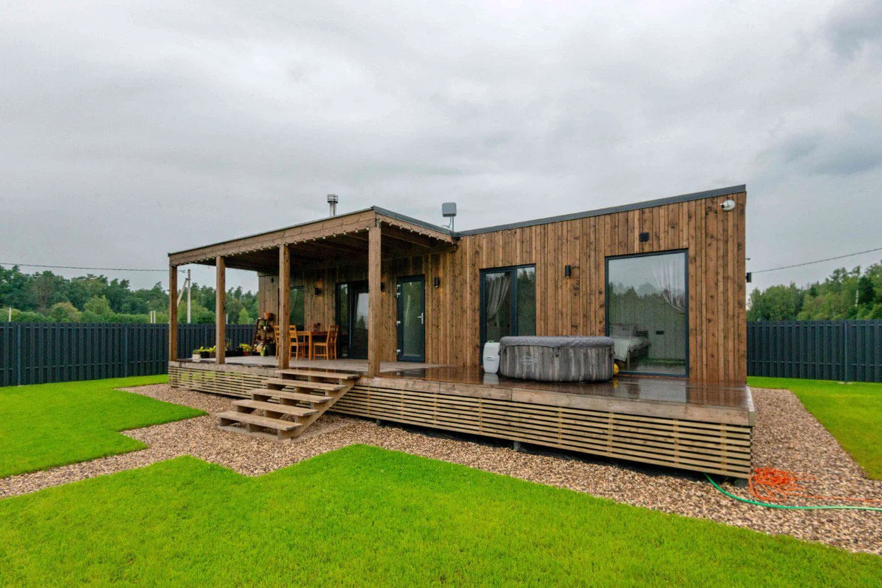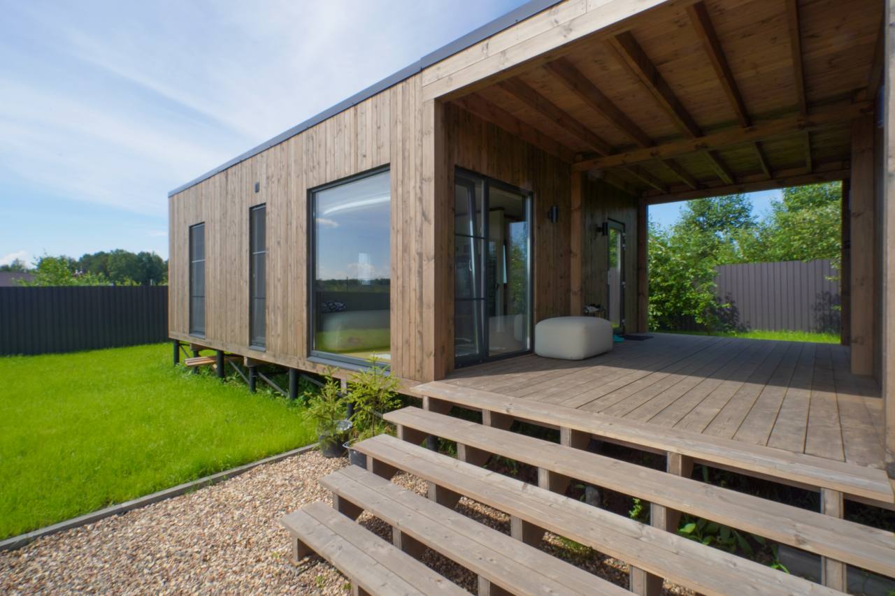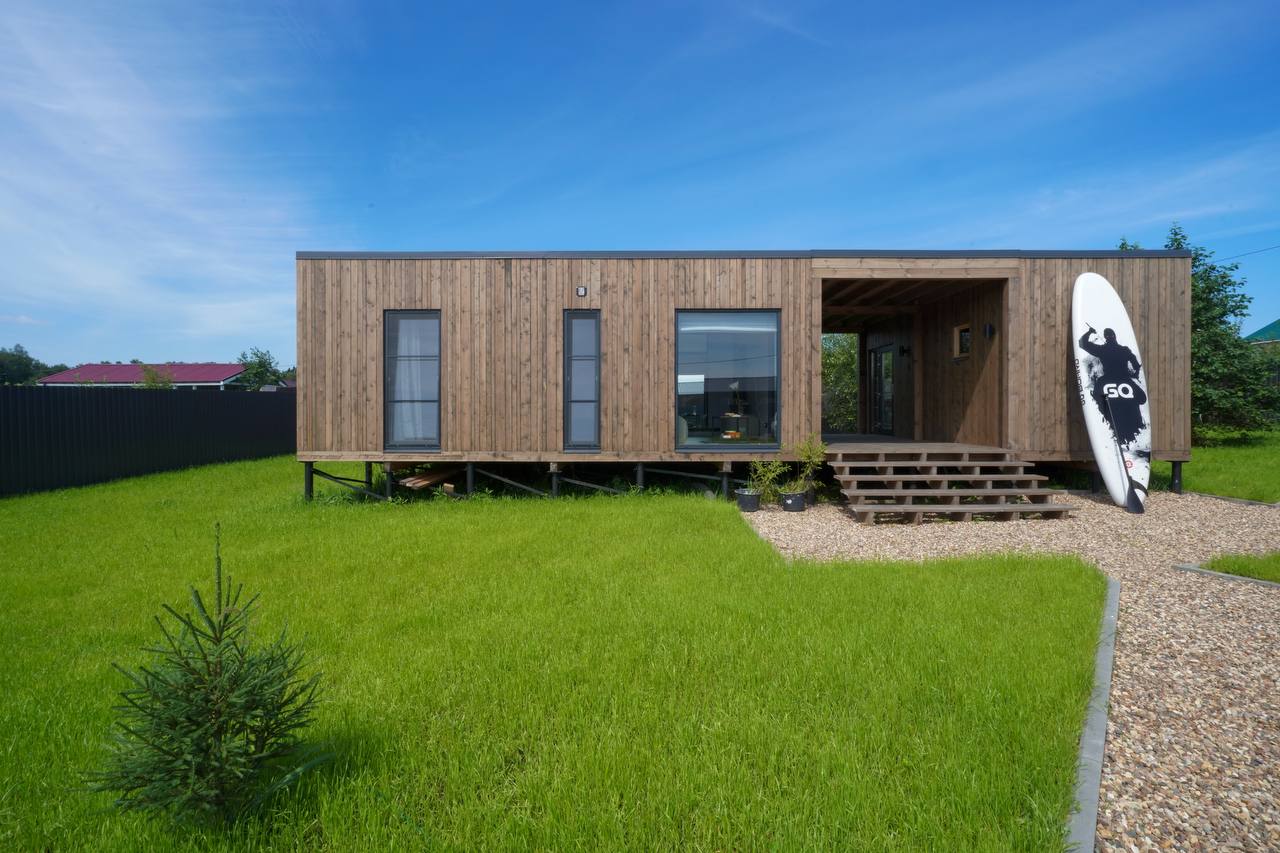 Стройке — нет! Мы привозим вам готовый модульный дом или баню и устанавливаем на участке за 1−2 дня.