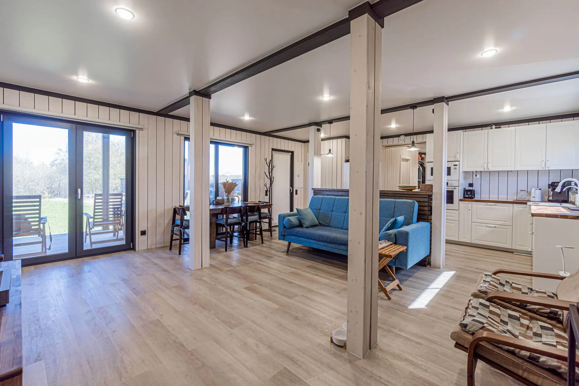 4. Всесезонность отделки. Поскольку стены не дают усадки и в конструкции нет излишней влаги, к внутренней отделке можно приступать сразу после монтажа коробки и крыши.